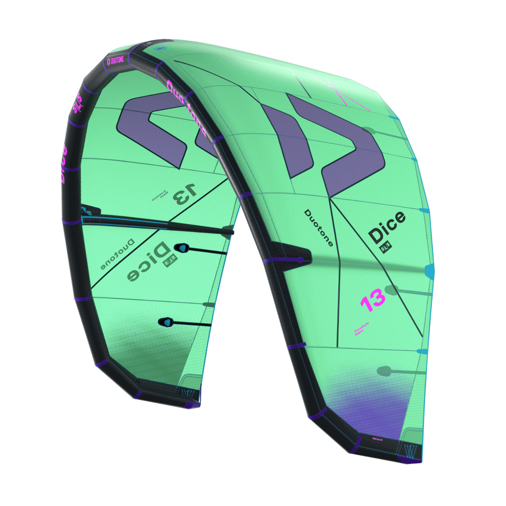 This kite is designed for those who demand explosive pop and crisp slack in their freestyle manoeuvres. Spicy it up and experience effortless drift while navigating waves, allowing you to maintain speed and control as you harness the energy of the ocean. With smooth and balanced power, the Dice SLS delivers the kind of performance that inspires confidence in any session. The Dice SLS features speedy turning capabilities, making it a solid performer in all conditions. One of the key advancements is the longer depower stroke, which enables smoother power delivery. The refined arc shape, with a more open centre and aggressively pulled-in tips, enhances the depower range while maintaining progressive power development for smooth transitions. Lighter steering is achieved through improvements to the canopy tension and attachment at the tip. This enhances the transfer of steering input, resulting in reduced bar pressure without compromising feedback, giving riders a more engaging experience on the water. Faster and more controlled turning is another highlight of the Dice SLS. With adjusted batten positions and an improved canopy structure, tip flutter is minimised, allowing for tighter, quicker, and more precise turns— essential for both loops and tight manoeuvres. When it comes to wave riding, the Dice SLS offers playful and reactive handling. Enhanced steering responsiveness and balanced power delivery make it lively and easier to manoeuvre in dynamic wave conditions, allowing riders to carve through the surf with ease. Moreover, the optimised bridle setup and improved load distribution provide increased control in gusty or challenging conditions, ensuring stability when faced with unpredictable winds. To top it off, the Dice SLS has been fine-tuned for freestyle performance. A deeper position in the wind window, combined with a refined shape, delivers explosive pop and clean slack, making it easier to execute hooked or unhooked technical tricks with confidence.