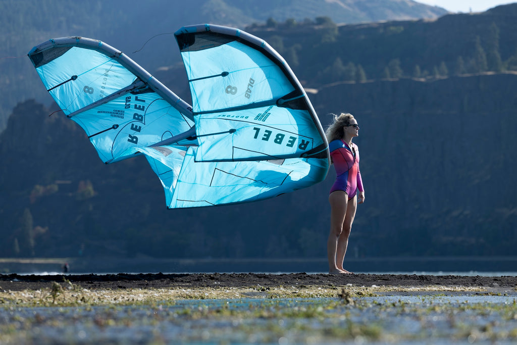 This kite is designed to provide an incredible big air experience, allowing riders to achieve prolonged airtime while maintaining stylish execution. With instant lift achievable with minimal input, the Rebel D/LAB empowers you to soar effortlessly. Experience the smoothest steering with the fastest depower, ensuring that you stay in control during every jump. One of the defining features of the Rebel D/LAB is its intuitive bar feedback, which offers total confidence as you navigate the air. The kite's exceptional 5 strut stability keeps it reliably positioned, even in turbulent conditions, enabling you to tackle the most demanding wind scenarios with ease. The Rebel D/LAB achieves a more vertical takeoff with reduced lateral pull due to its shortened chord length and refined arc. This combination creates a more aerodynamic shape that boosts upward propulsion while minimising sideways drift during takeoff. A sharper and more direct bar feel is realised through the removal of pulleys in the bridle system, resulting in a crisper connection between the rider and the kite. This change significantly enhances precision and feedback, allowing for seamless manoeuvrability. Faster and more reliable loop recovery is another hallmark of the Rebel D/LAB. Refined arc and shape, paired with reduced bridle friction, enable the kite to climb back up quickly after loops, granting riders increased control and confidence during dynamic transitions. The incorporation of Aluula D/TX in the leading edge and struts leads to lighter, more dynamic handling, making the kite more torsionally responsive and playful in the air. This enhancement contributes to improved steering and responsiveness, ensuring the kite maintains its shape in powered conditions, allowing for precise turning and control during high-performance manoeuvres.