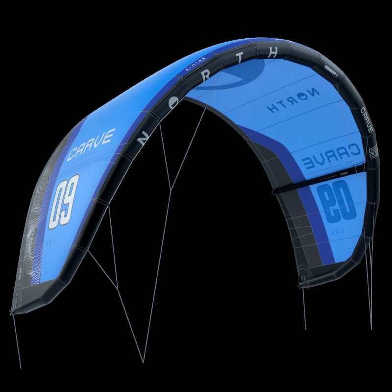 The Carve is a powerful, reactive and controllable kite, ideal for carving up a wave face, tucking into a barrel or boosting strapless tricks. Engineered with a stable, lower aspect ratio design for fast pivot turns and excellent drift, the Carve has an extremely direct feel in both bar pressure and steering initiation. Intuitive control—especially when the kite's not visible on a big bottom turn, cutback, or barrel—means you can focus 100% on the surf. The Carve has a longer, progressive travel, so it feels smooth and responsive throughout the full depower range and is reactive to the very end when you sheet out. For 2025, we’ve refined the 2025 Carve bridling for increased depower and responsive feather-light steering, so the Carve feels lighter, faster turning and more agile. You’ll also discover a cleaner, more aerodynamic canopy profile, with lighter bar pressure for more stable efficient drifting and less pull on the wave face. The improved overall balance with more sweep in the tips enhances drift, so when you're surfing, it glides down the line, waiting for your bar input. The wingtips are light, and the smooth curve and shape draft back ensures balance. A thinner LE diameter reduces the pulling power, while added sweep enables effortless roll to relaunch. The 2025 Carve is smoother, more stable and manageable in gusty conditions. The Carve flies fast upwind and experienced riders will benefit from the kite's impressive power and efficiency. Intermediate riders will find it offers a smoother, more user-friendly ride. Freeride and Strapless Freestylers will love the light reactive steering, longer bar stroke, improved hangtime and catch for rotations and softer landings.