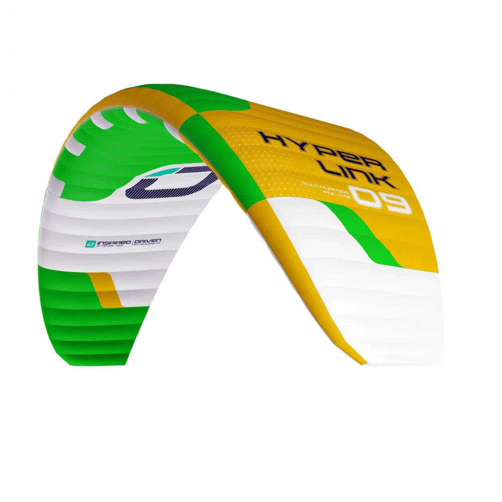 The Hyperlink is a true multi-purpose foil kite. Set it up in closed cell 4-line mode on the water, or convert it to open cell 5-line mode for the ultimate in safe and versatile handling on the snow.