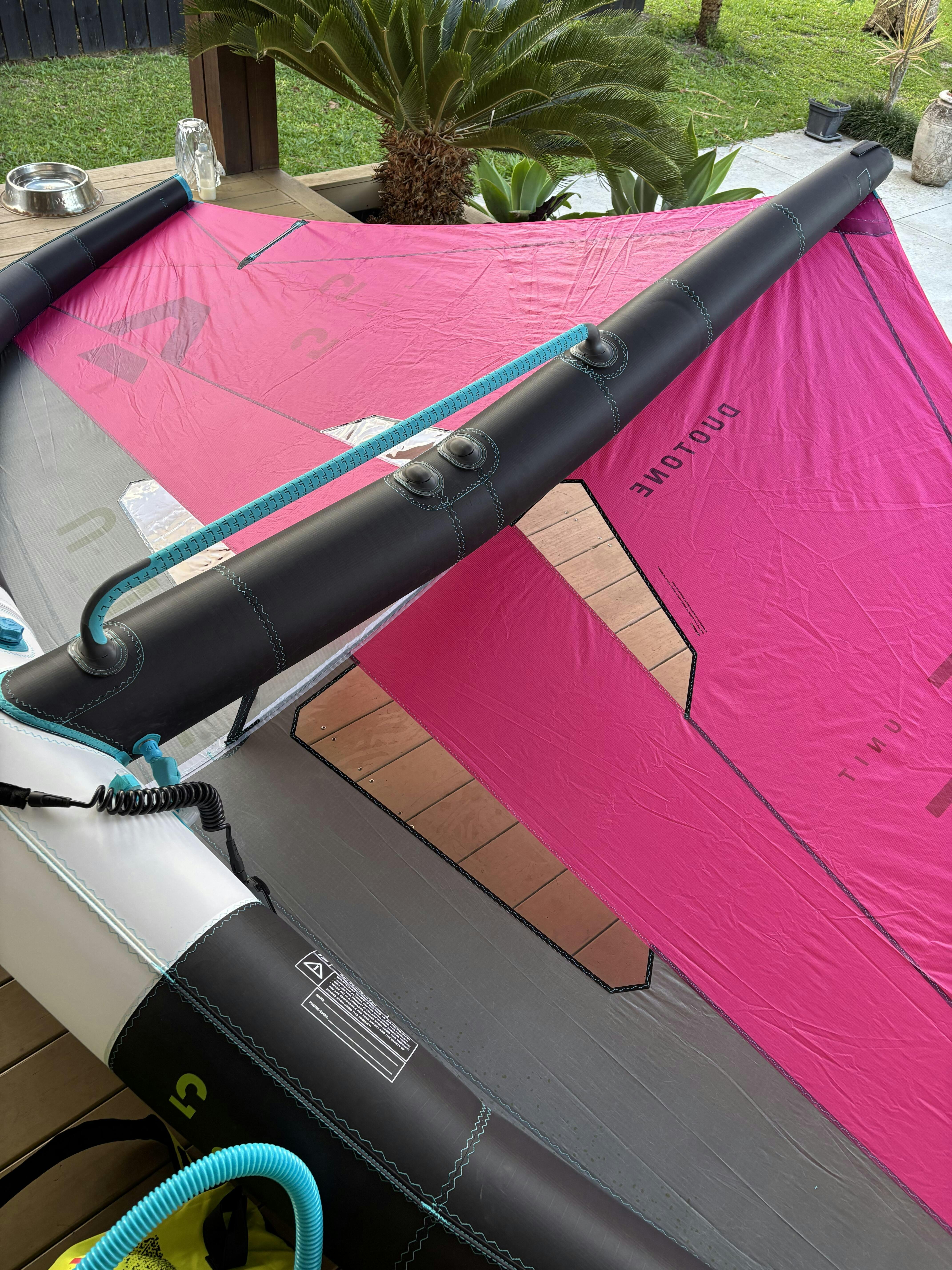 The Unit 2025’s design improvements also include refined canopy tension, tip twist, and tube diameter, enhancing the wing’s overall performance and ease of use. The improved window placement provides better visibility, and a new, stronger leading-edge handle offers precise steering and control of the wing when flagged out on a wave.