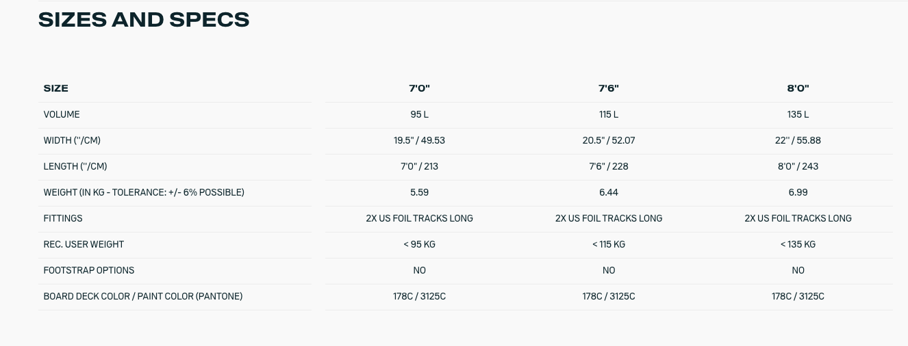 The Downwinder SLS comes in three dedicated shapes: the compact 7’0’’ x 19.5’’ (95l), the versatile 7’6’’ x 20.5’’ (115l), and the stable 8’0’’ x 22’’ (135l).