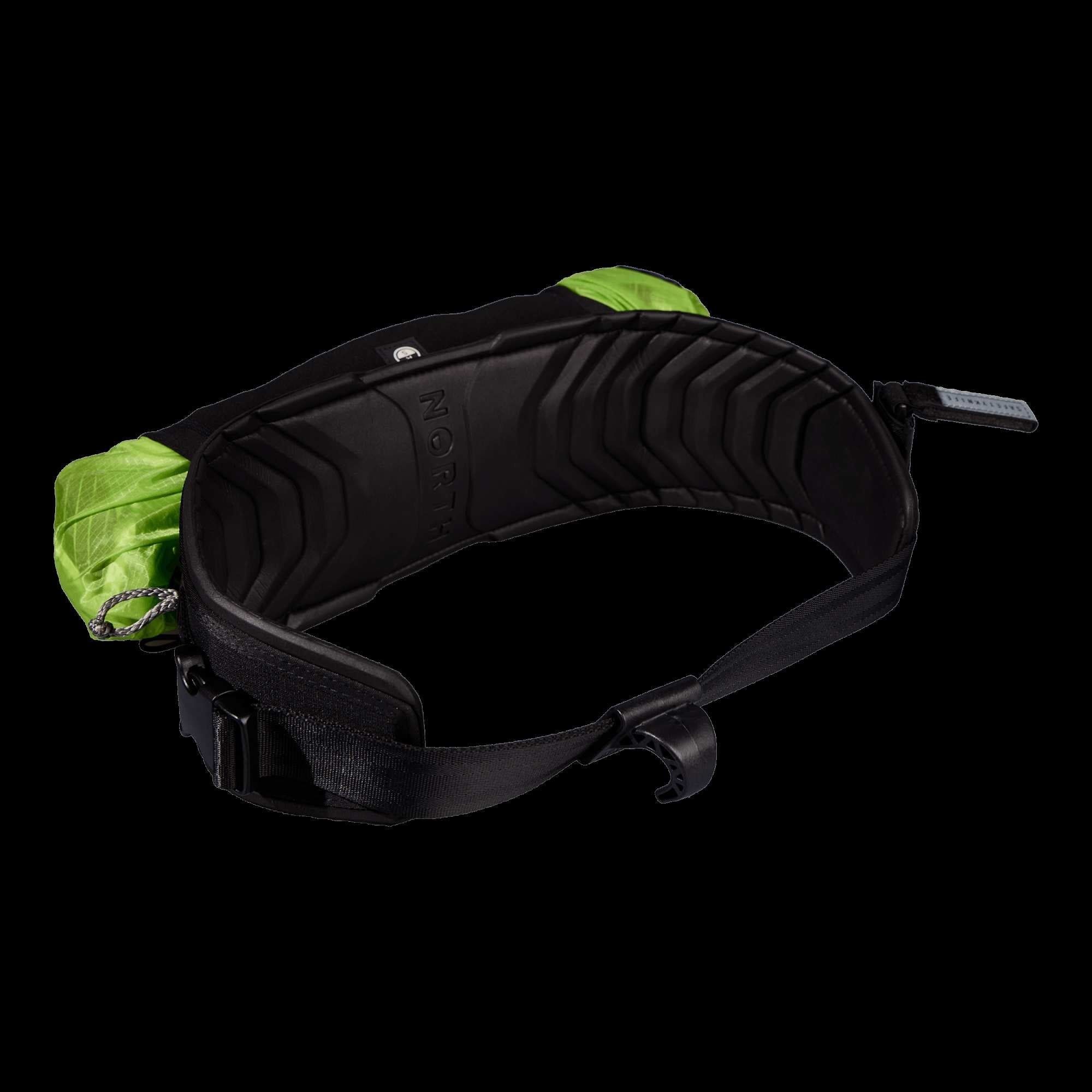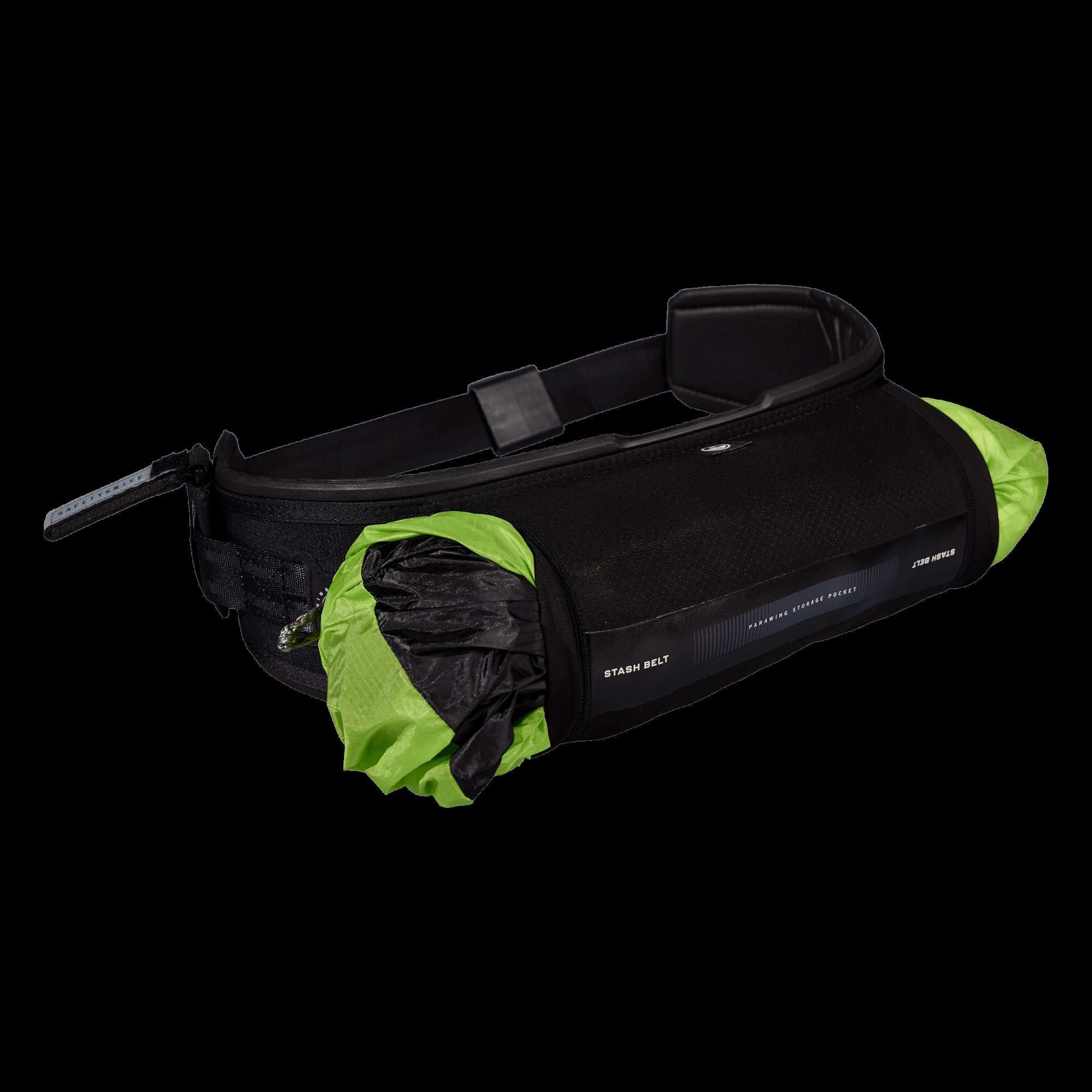 Comfortable, lightweight belt with generous KnitFlex dual-sided pouch to stow your parawing for handsfree paddle-outs, surf and downwind foiling. Doubles as a harness with comfortable ergonomic back support to reduce fatigue on longer voyages. One up, one in the bag, the Stash Belt can be used to stow an additional parawing size to increase your wind range. It will work for other para wings on the market, and is not just limited to the North Ranger. Packed full of features for comfort and convenience, including a firm 3D-formed frame with non-water absorbing EVA grip padding, wide webbing strap with sturdy buckle for easy adjustable setup and Dyneema leash attachment loops to connect wing/board leashes. The Stash Belt is supplied with a Wing Harness Hook that is compatible with a North Wing Harness Loop (sold separately). One size fits multiple waist sizes, and can be worn with a PFD vest and wetsuit. You can also stow a parawing in the Stash Belt as a rescue device for offshore wingfoiling or e-foiling.