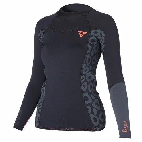Diva 2mm Neoprene Long Sleeve Top. Great as a summer top for SUP and perfect to go with Diva or any neoprene or Lycra pants.