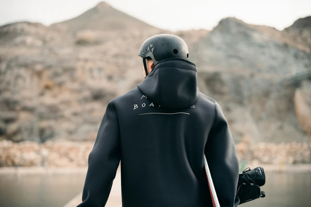 Keep your sessions toasty with The One Sweat, available in an all black design. You'll stay undeniably warm in this wind and water resistant hoodie, which can be layered over other tops and quickdry shirts. Featuring an adjustable hood with a water drain, an elasticated waist strap, and velcro wrist straps to keep the water out.